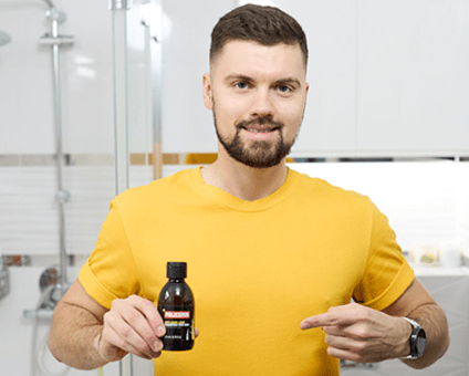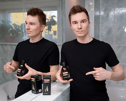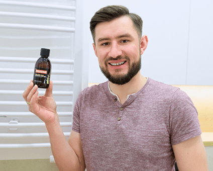 92% mężczyzn stosujących Folicerin zauważa zmniejszenie oznak łysienia i wzrost nowych włosów, które z biegiem czasu stają się ciemniejsze i mocniejsze.